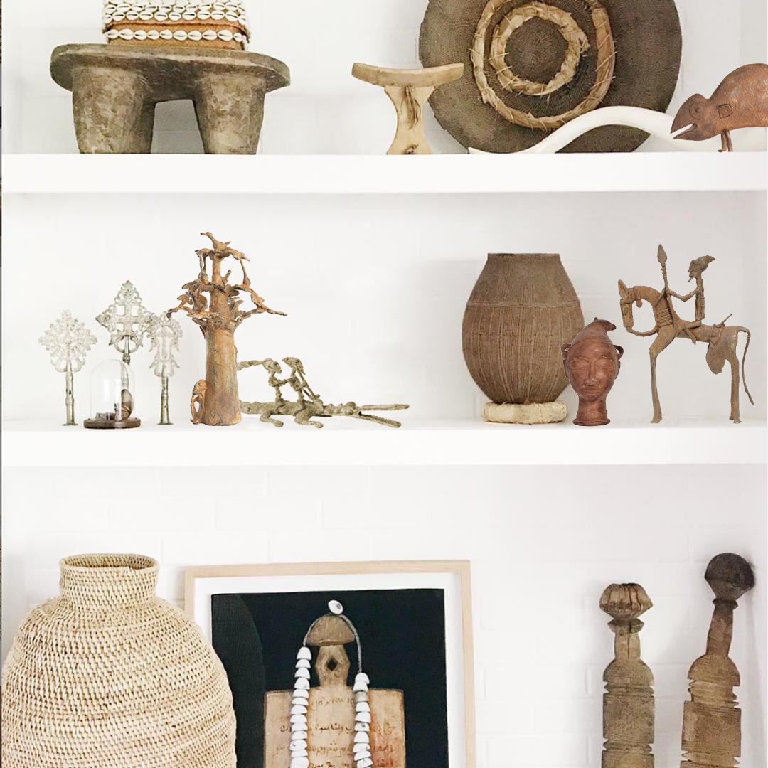 Esta colección es un tributo a la profunda interconexión entre las culturas y la naturaleza en África. Desde las Cabezas Decorativas de Bronce de Benin y de Ife hasta las Figuras de Animales y Árboles Baobab con Espíritus de la Naturaleza, y desde las Figuras Dogón de Guerreros, Reinas y Reyes hasta las piezas que capturan la esencia de la nobleza africana, cada obra maestra es un tesoro en sí misma.