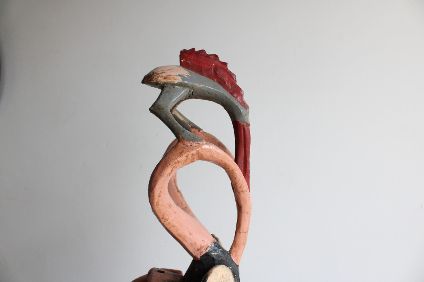 Esta obra maestra presenta un diseño único, con un rostro enigmático coronado por un intrincado sombrero que evoca la majestuosidad de un pájaro.