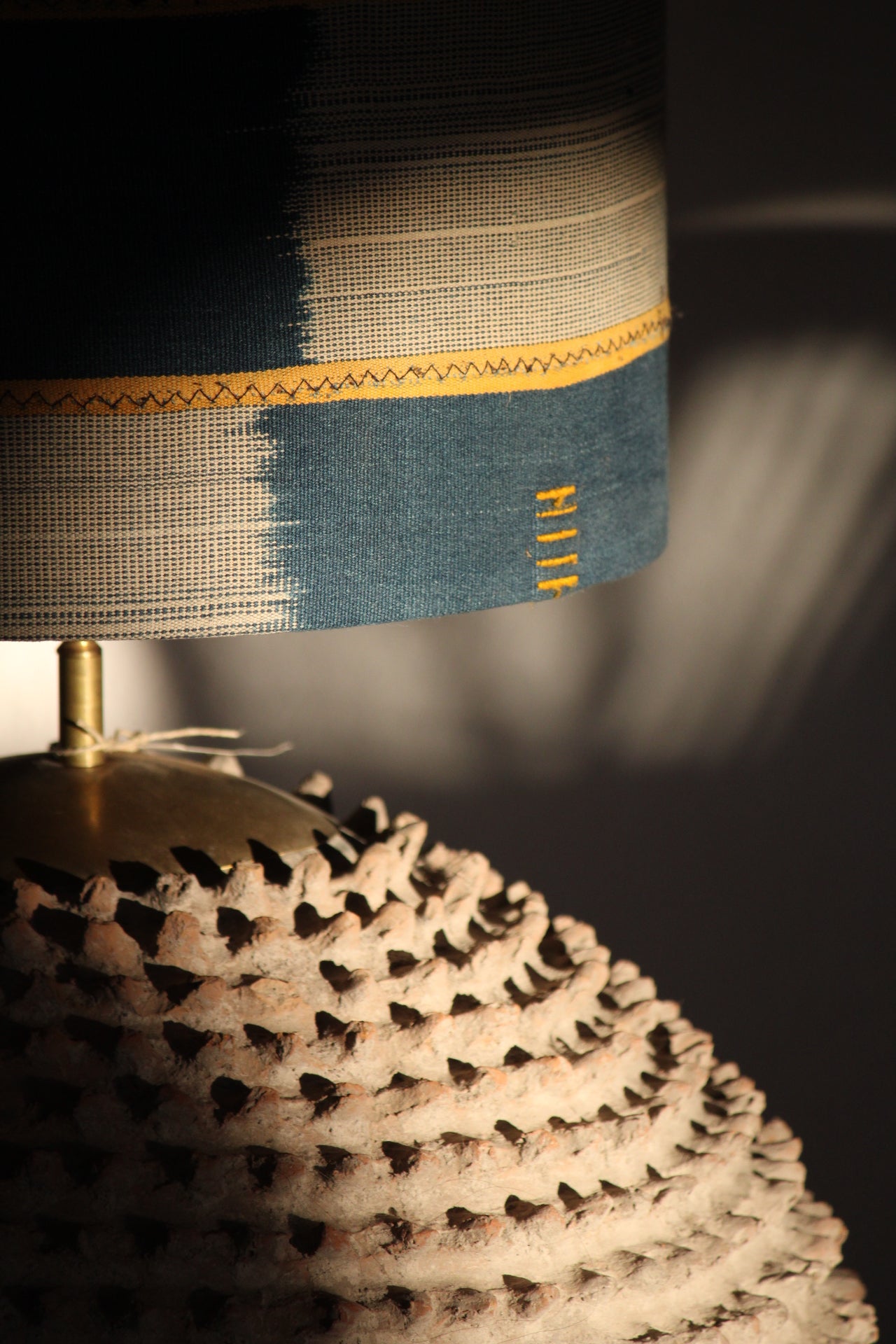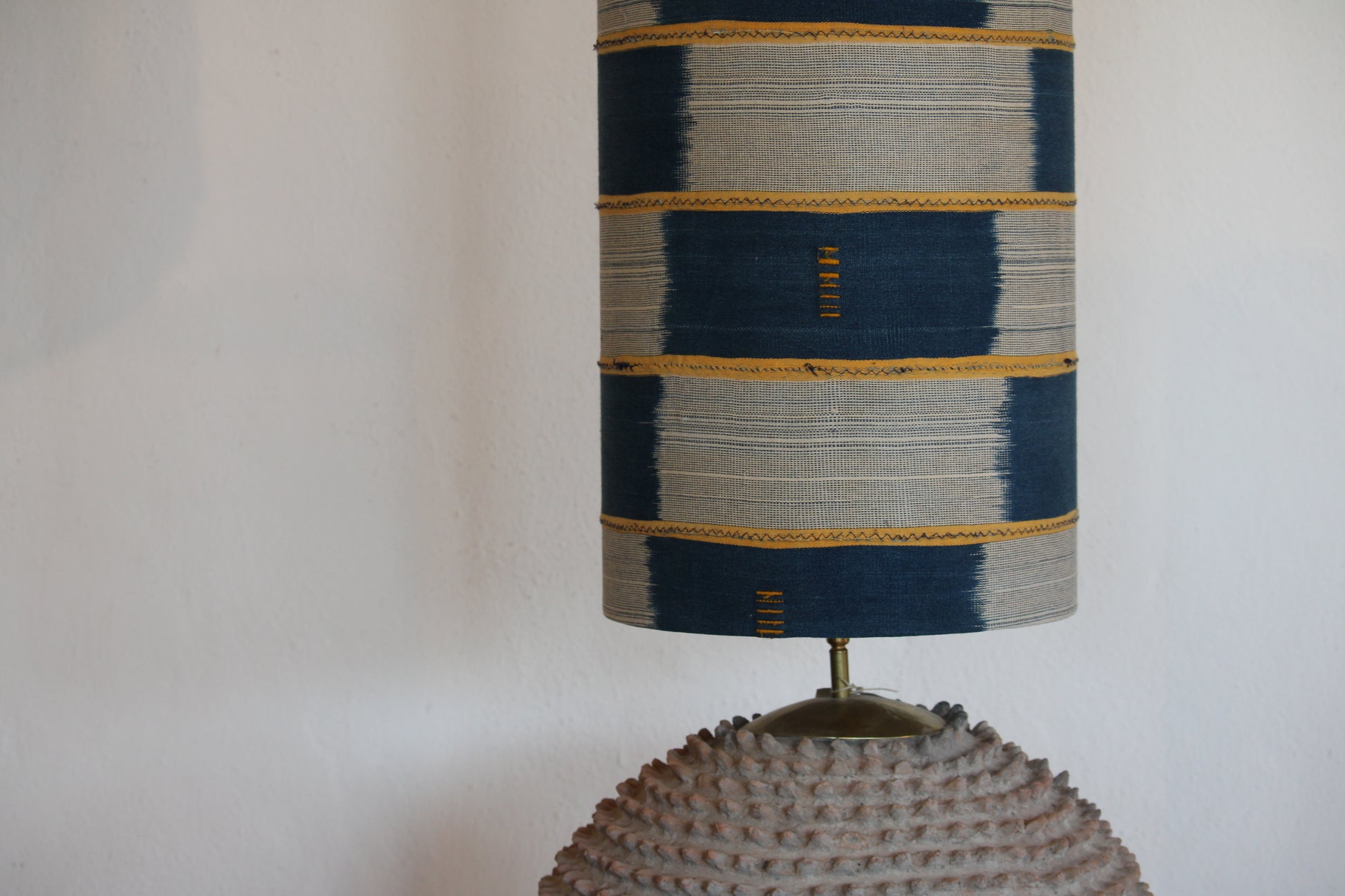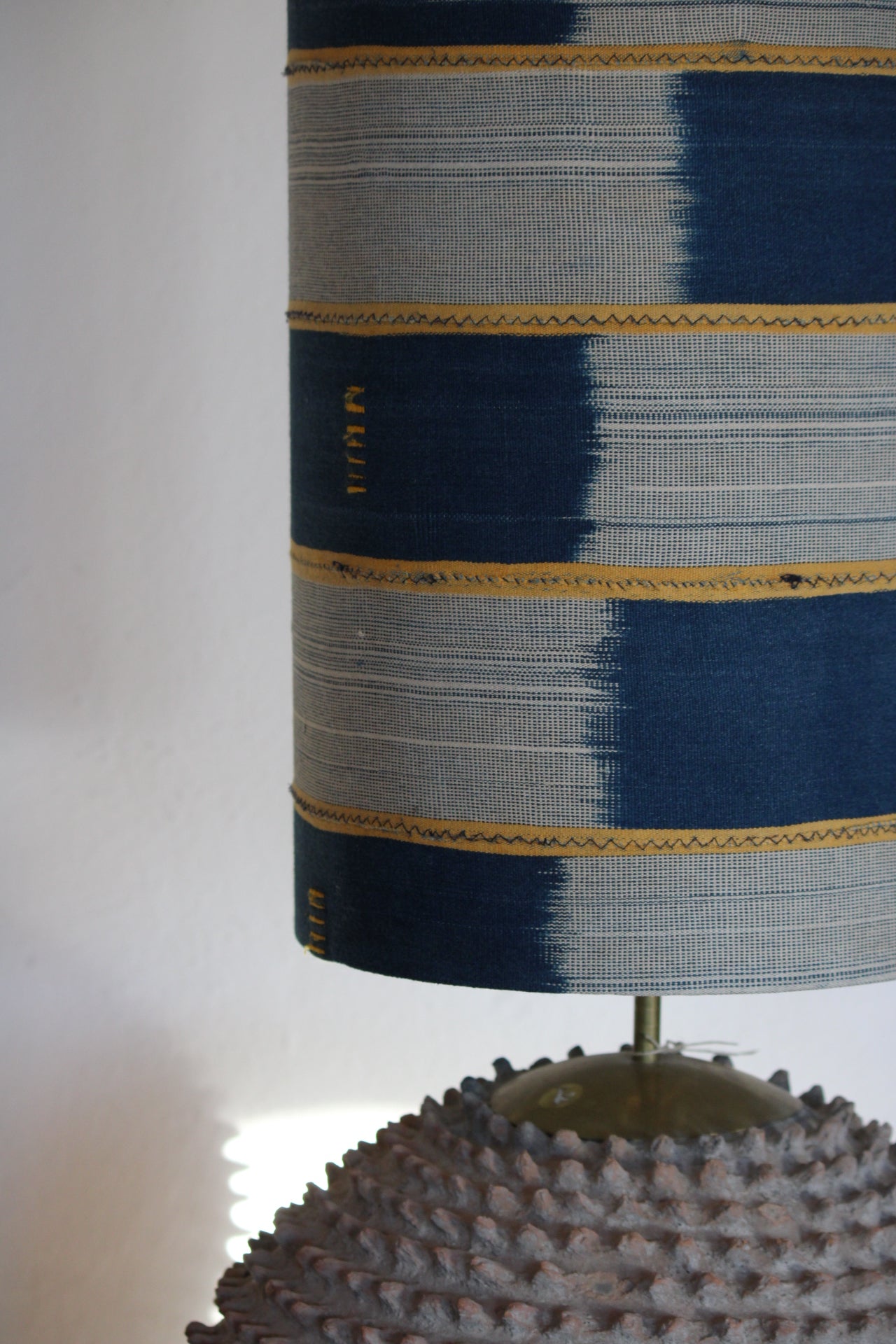 Esta pantalla no solo es funcional, sino también una pieza de arte en sí misma. Su diseño cilíndrico y sus dimensiones generosas permiten que la tela Índigo Baulé se exhiba en toda su gloria, mostrando sus intrincados detalles y patrones tradicionales. Además, su capacidad para combinar con otras pantallas del mismo estilo disponibles en Sankore África ofrece la oportunidad de crear armoniosas composiciones luminosas que realzan la belleza de cualquier ambiente.