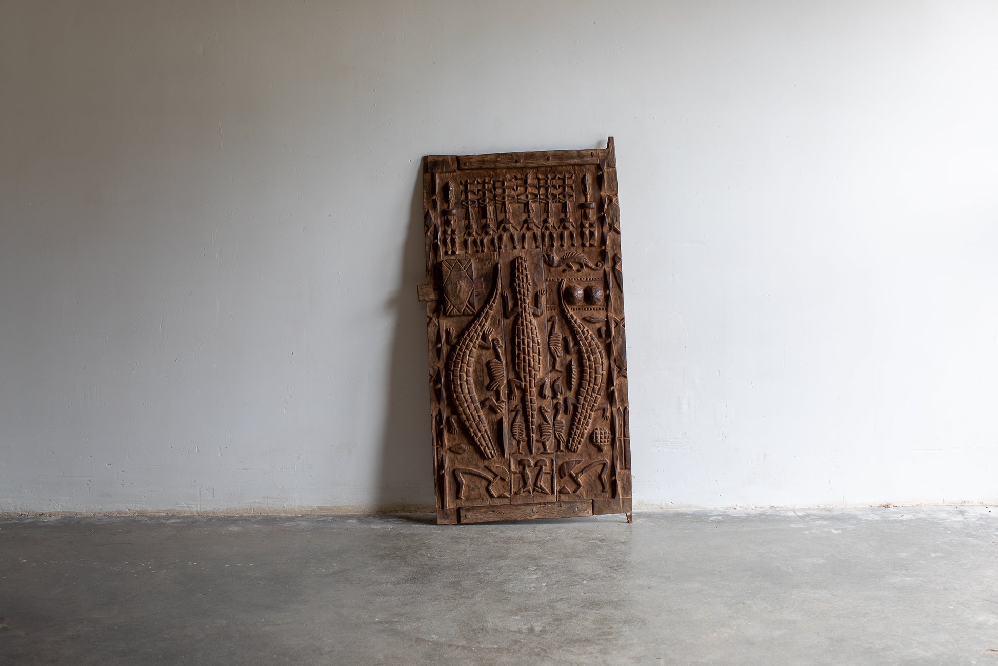 Hand-carved by local artisans, this door embodies the meticulousness and craftsmanship of generations. Its intricate design and finely crafted details tell ancient and mythological stories from the Dogon worldview. Each carving, each symbol, evokes a connection with the ancient wisdom and spirituality rooted in Dogon culture.