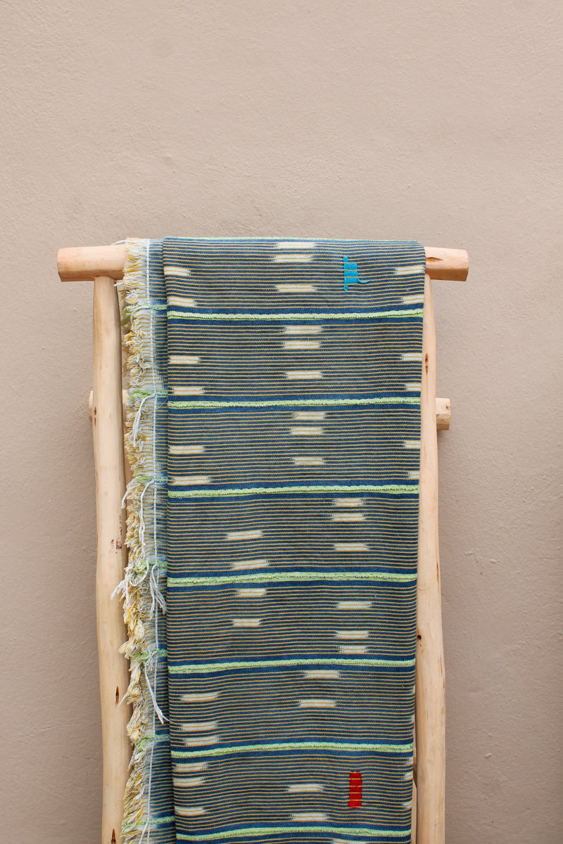 El proceso de tejido consiste en crear tiras largas y angostas, que luego se unen para formar piezas de mayor tamaño. Los telares manuales de madera garantizan que cada pieza sea única y rica en detalles.