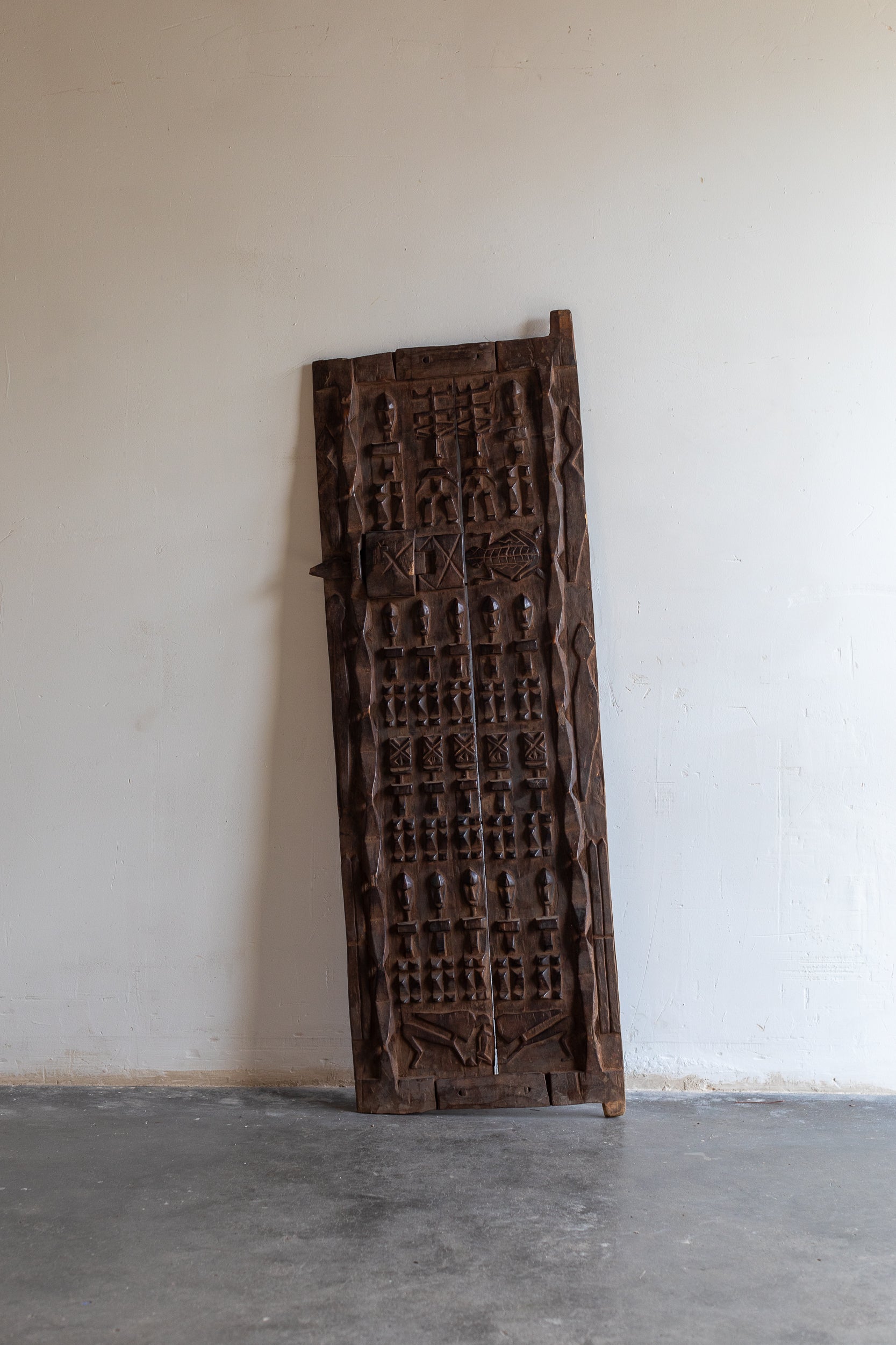 Les Dogon sont particulièrement connus pour leurs traditions religieuses, leurs danses de masques, leurs sculptures en bois et leur architecture. Les portes sont utilisées dans les greniers de la tribu. Différentes figures et dessins sont sculptés sur le bois qui font référence à leurs croyances et à leur mythologie. Les seins féminins, qui représentent la fertilité, sont un élément très courant. D'autres thèmes incluent des guerriers à cheval, des figures d'animaux, de grands crocodiles dénotant la force et la puissance, et des rangées sur des rangées d'ancêtres du peuple Dogon.