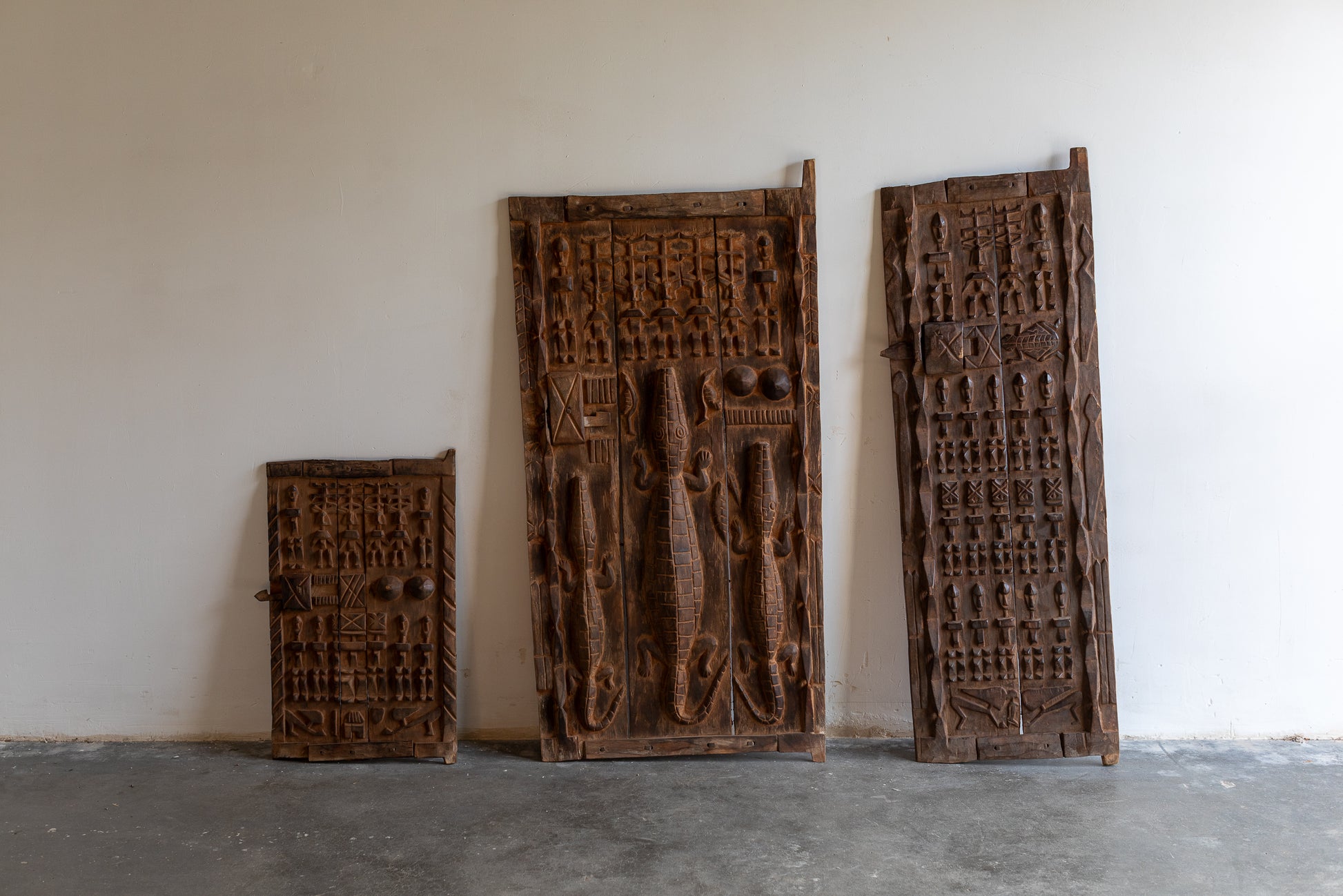 Les Dogon sont particulièrement connus pour leurs traditions religieuses, leurs danses de masques, leurs sculptures en bois et leur architecture. Les portes sont utilisées dans les greniers de la tribu. Différentes figures et dessins sont sculptés sur le bois qui font référence à leurs croyances et à leur mythologie. Les seins féminins, qui représentent la fertilité, sont un élément très courant. D'autres thèmes incluent des guerriers à cheval, des figures d'animaux, de grands crocodiles dénotant la force et la puissance, et des rangées sur des rangées d'ancêtres du peuple Dogon.