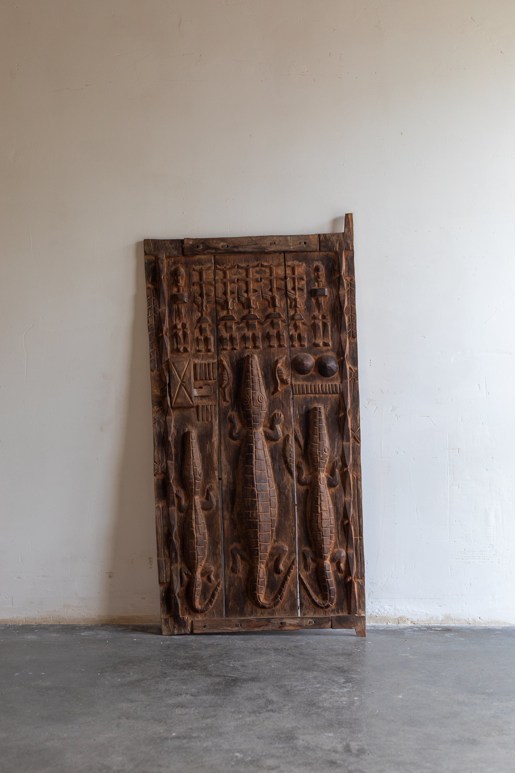 Porte Dogon sculptée à la main dans une seule pièce de bois.