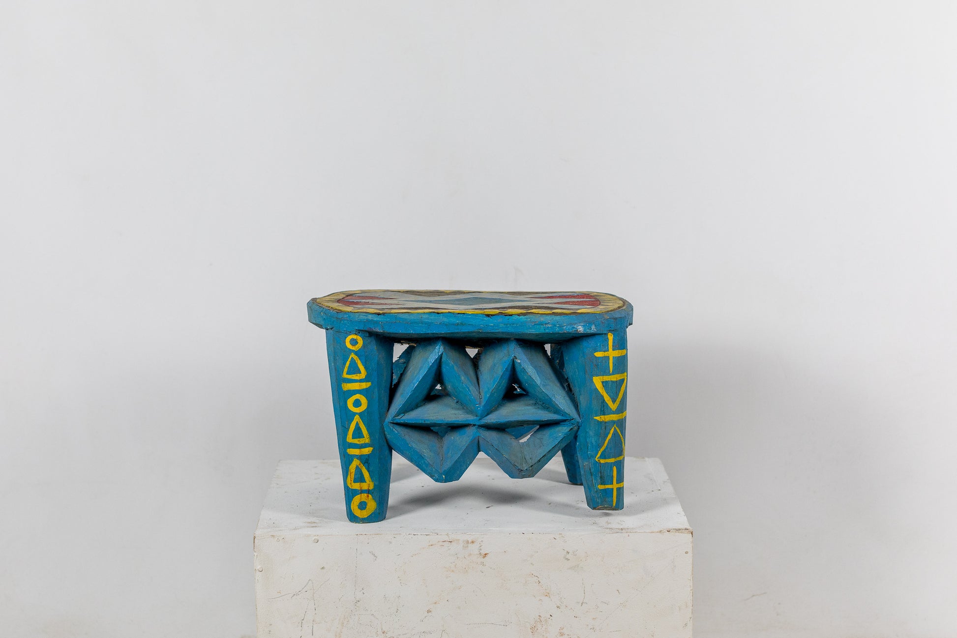 Les tabourets nigérians sont de véritables œuvres d’art fonctionnel. Originaires de diverses ethnies, ces tabourets présentent des motifs géométriques complexes et une symbologie culturelle. La palette de couleurs vibrantes, souvent à base de pigments naturels, met en valeur le savoir-faire artisanal et la riche tradition décorative. Ces tabourets servent non seulement de sièges mais aussi d'expressions visuelles de l'identité culturelle et de l'ingéniosité artistique des communautés nigérianes.