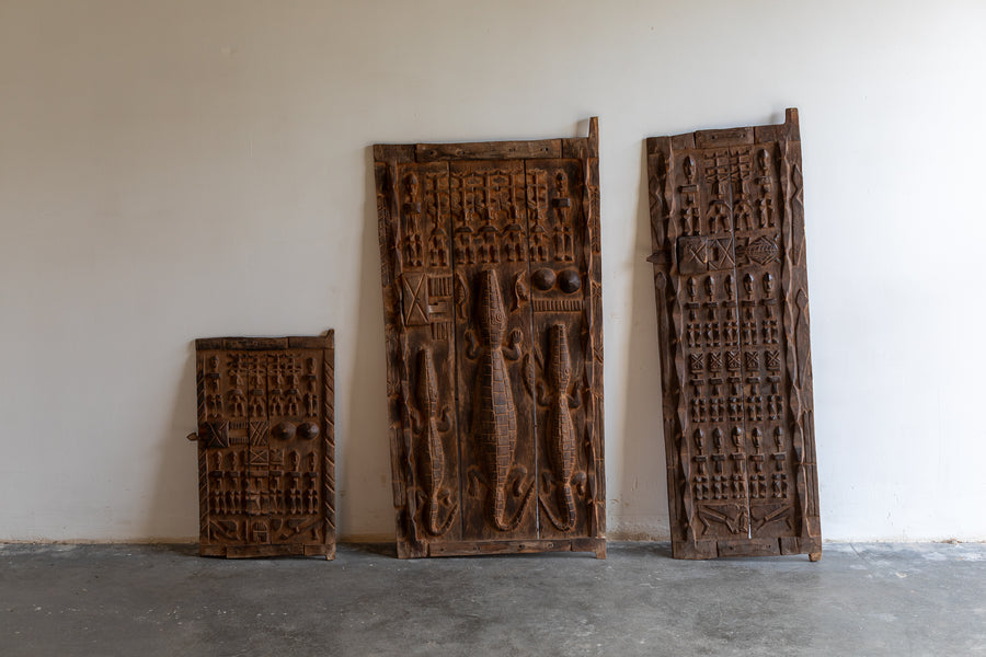 Les fenêtres Dogon en bois du Mali sont des chefs-d'œuvre de l'artisanat africain. Ils se caractérisent par leurs motifs complexes sculptés à la main dans du bois local. Ces fenêtres, généralement carrées ou rectangulaires, présentent des motifs géométriques et symboliques qui reflètent la riche culture et les croyances spirituelles du peuple Dogon. En plus de leur beauté esthétique, ces fenêtres jouent également un rôle fonctionnel dans le contrôle de la circulation de l'air et de l'éclairage dans les structures traditionnelles en pisé de la région du Mali.